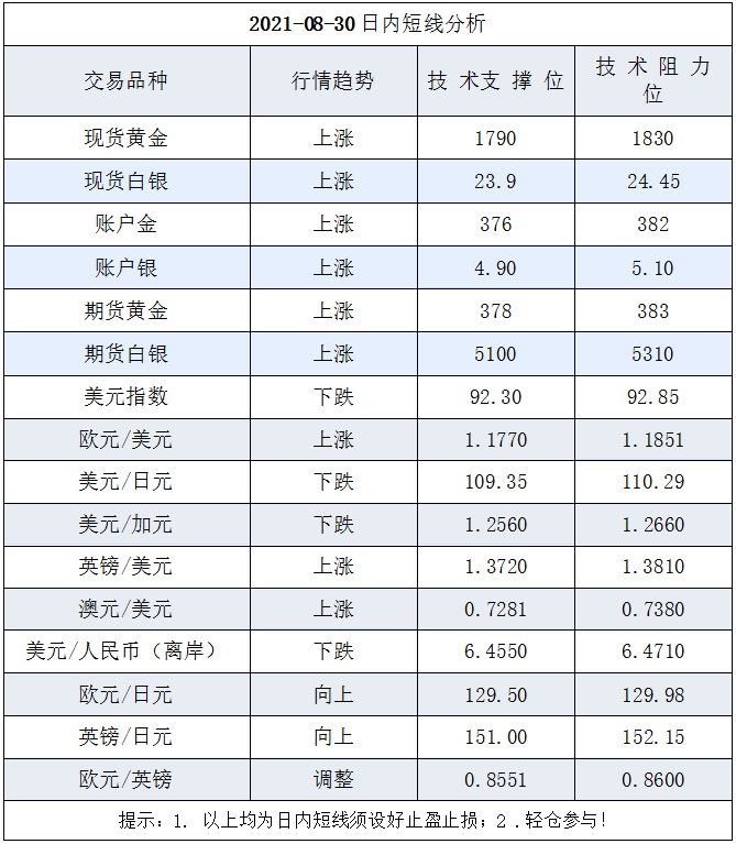 综合来看,美联储主席鲍威尔讲话对贵金属的走势构成绝对支持,美国经济数据继续疲软支持金银走势;美军在阿富汗喀布尔机场的军事爆炸,都提高了地缘政局的紧张气氛,对金银对走势构成了重要对支持。