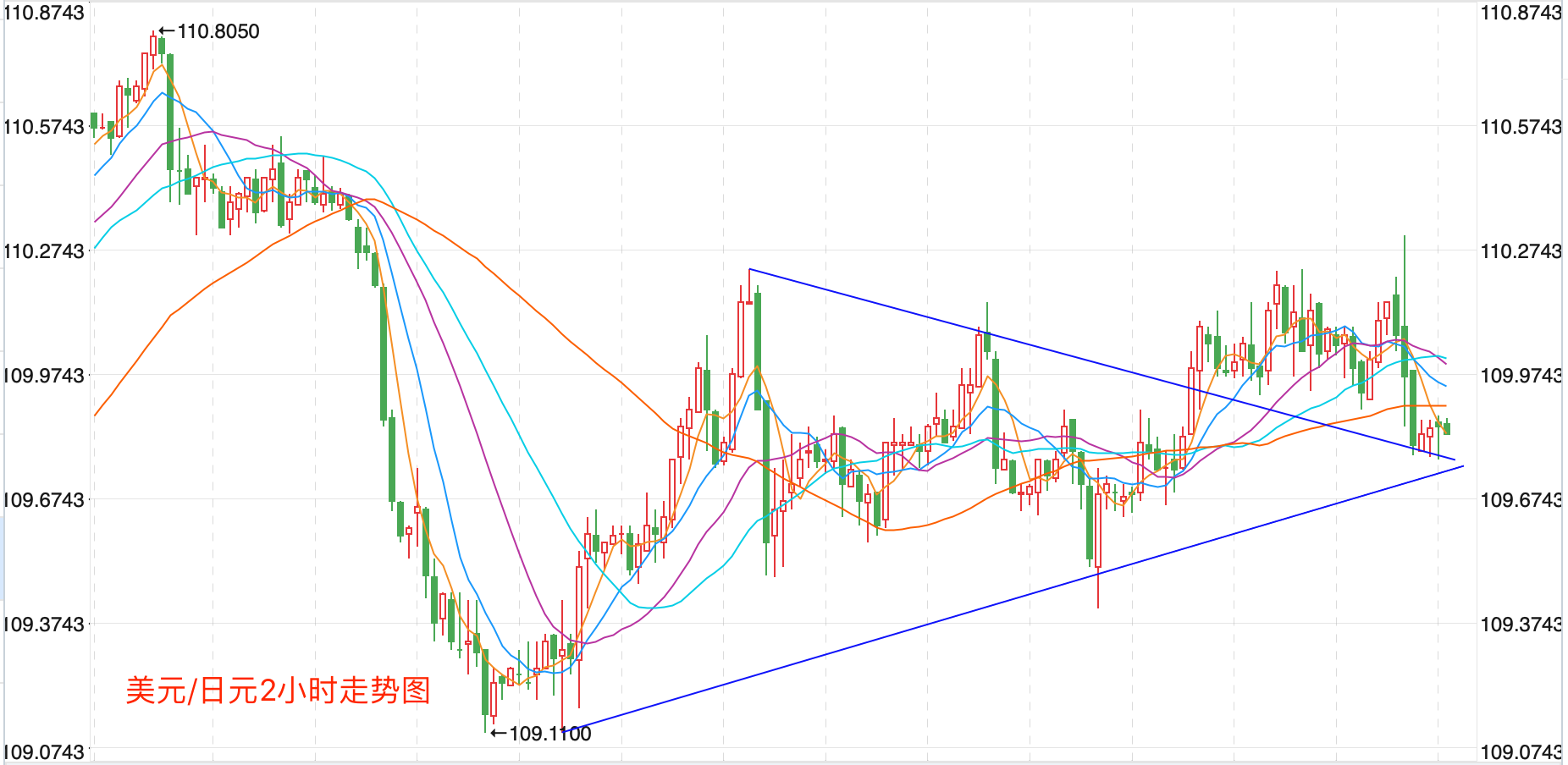 前期自2020年3月底企稳101.178低点开启上涨走势,触及111.71点高位后震荡回落走低;2021年1月触及102.560点的低位支持后震荡向上突破MA200均线阻力后反复走高运行;中长期走势已经恢复到了7月24日到高点。当前日内有继续震荡向下的趋势,可以逢高短空。