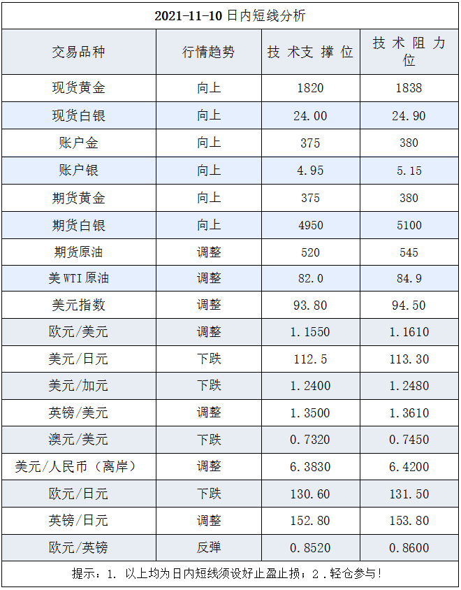 未来3个月、6个月和9个月将对经济前景变得更加清晰是非常重要的,如果劳动力未来几个季度没有恢复,这将意味着高通胀可能会持续,经济增长可能会放缓,他对货币政策持开放立场。还有众多官员发表了有关通胀看法的观点,整体看就是高通胀有持续下去的威胁。第三,市场押注美联储加息的日期在后移,这显然影响了当前美元指数的强弱;众多交易员预计的首次加息推迟到明年最后一个季度成为普遍共识。市场现在对加息周期的结束充满了猜测,预计预计明年启动的美联储加息周期可能会在2023年结束后不久基本完成并尘埃落定,虽然欧洲美元期货和期权反映了2022年和2023年美联储将多次进行每次25个基点的加息,但对此后的预测仅为一次,凸显了市场认为此次收紧周期相对较短、程度较轻。整体来看美联储本轮收紧采取了充分的市场沟通和对话宣传,营造既收紧宽松货币政策又不导致美元上升和美股大跌的气氛,但是美元似乎依然有很强的反弹动能。