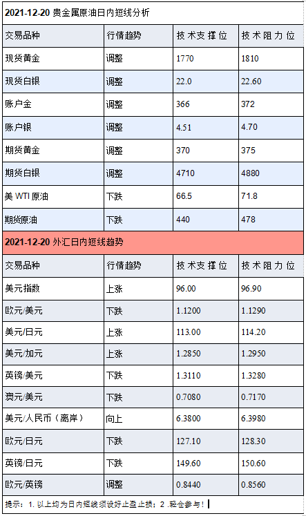 美元 对美元指数走势构成影响的因素有以下几个方面,首先,美国公布的截至12月17日当周全美钻井总数为579口,低于市场预期的580口但是高于前值的576口。对油价够成一定的支持。其次,美联储理事沃勒(Christopher Waller)周五表示,在决定提前结束资产购买计划后,美联储可能最早在3月15-16日会议上开始加息,以遏制“高得吓人”的通胀。“加速Taper的全部用意就是让进程大大加快到3月提前结束,从而使3月份的会议存在(加息的)可能性。这就是我们的目的。当然这仍将取决于数据,但3月份是首次可能加息的现场会议,”沃勒还主张美联储可以在加息后的一到两次加息会议上,就决定开始缩减其庞大的资产负债表,允许到期证券流出。“如果我们在夏季之前开始缩表,就能减轻一些压力——不必再加息那么多,我的观点是我们应该在明年夏天之前缩表。”纽约联储主席威廉姆斯也表示,“我非常关注实际利率。在我们的预测中,略高的通胀率特别是明年的通胀率显然是一个考虑因素,我们希望确保我们正在调整政策,并在未来逐步撤出宽松措施。”旧金山联储主席戴利周五也表示,如果奥密克戎变异毒株引发的新一轮疫情未破坏经济复苏,她预计“明年加息两到三次是合适的”。第三,有机构的观点认为,美联储的鹰派程度却远远超过了利率市场的预期,反倒是交易员似乎开始比美联储更相信“通胀是暂时的”美联储现在终于开始向市场对2022年的加息预期靠拢,但交易员却押注这会导致加息周期更短,幅度更小,美联储从当初被市场牵着鼻子走,到如今反而远远跑在了市场的前面。综合以上基本面看,美联储理事在禁声期结束后,纷纷就收紧宽松发布更为激进的鹰派观点,明年3月份就加息的论调吓到了市场,美元由此重新走高,金砖汇通判断美元处在顶部调整走势可能结束,一个强势向上的趋势应在形成;非美货币将有一波受压回落的走势。