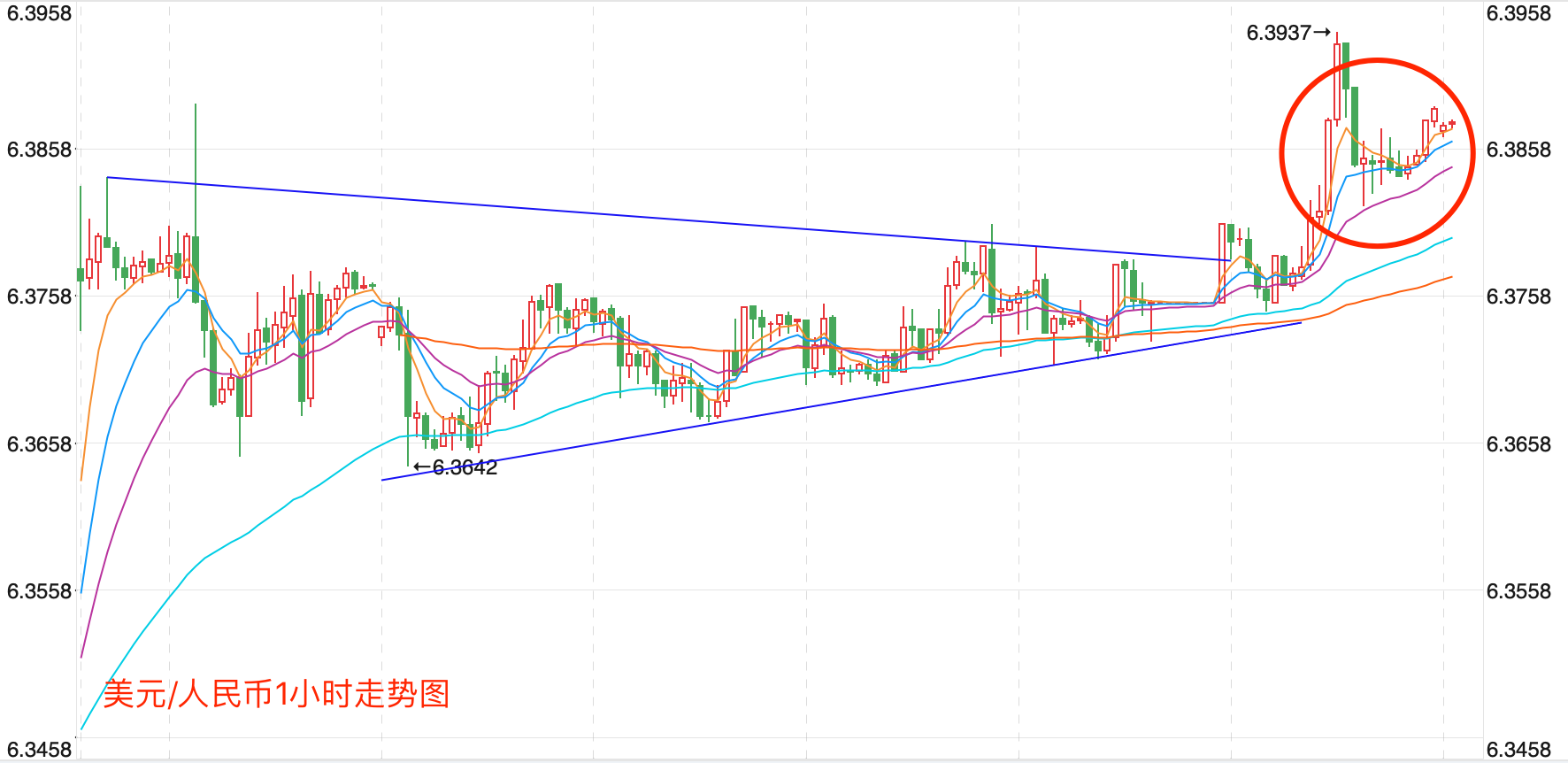 离岸价前期自2020年5月高位7.1964开启下跌走势,盘中跌破MA200均线的关键支持而下行走低;2021年5月触及6.3477点低位后开始震荡走高。当前行情日内有继续向上调整的趋势。