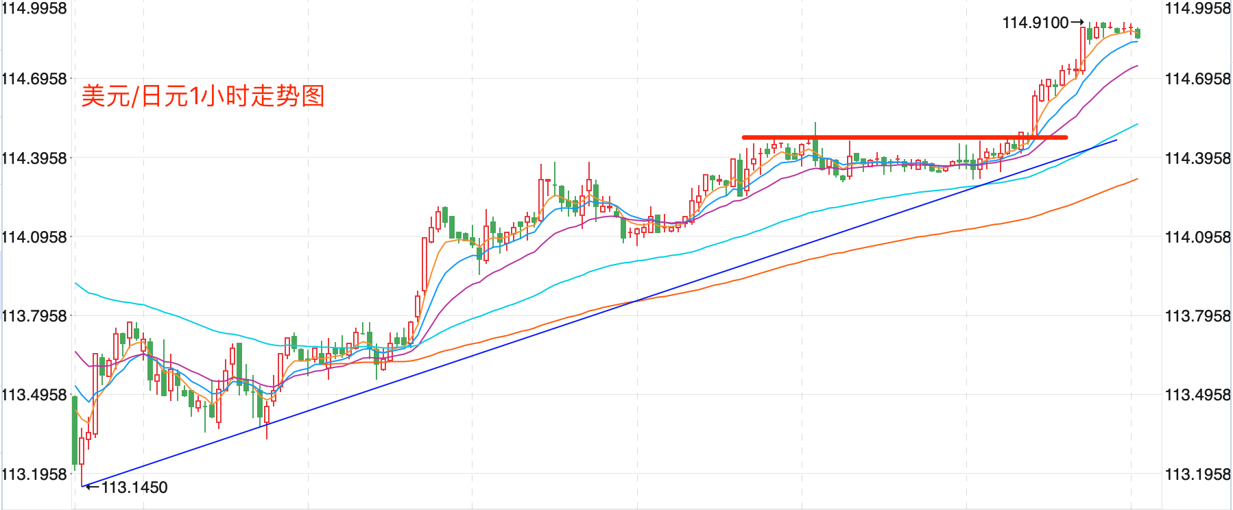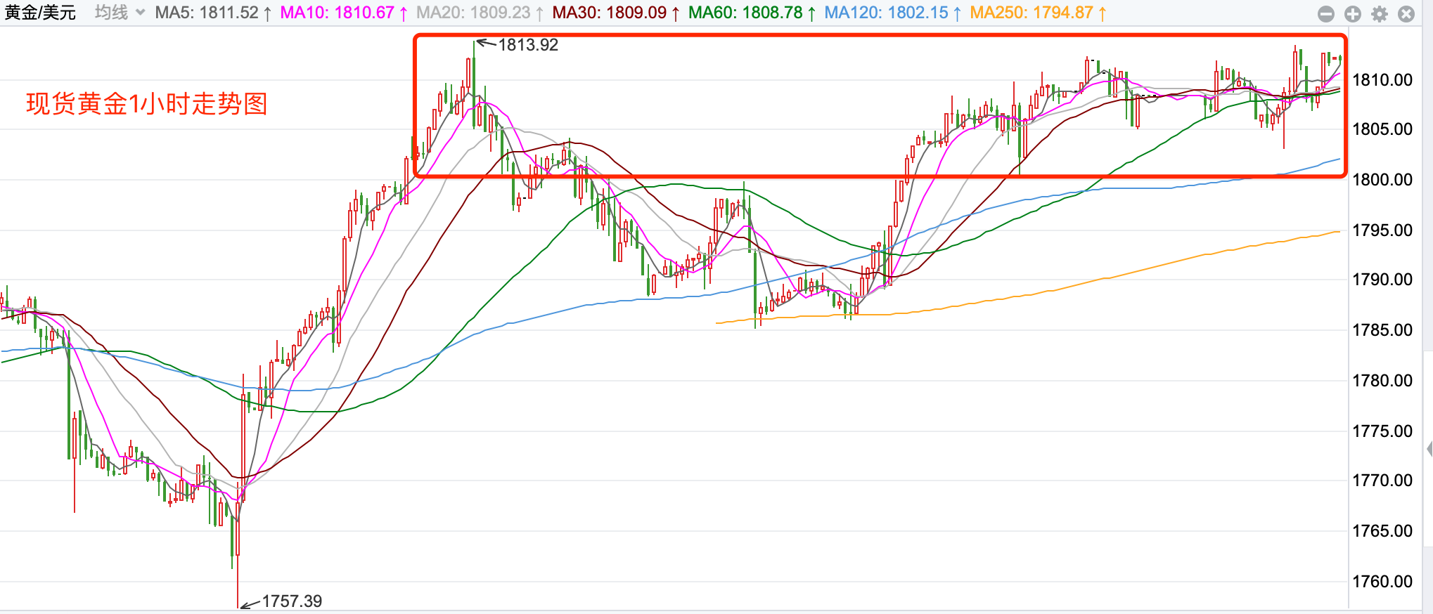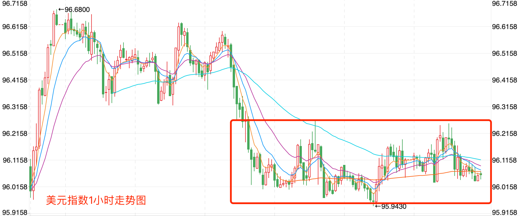 美元指数前期持续上涨在2020年3月份创出102.99点的高位后一路震荡回落走低,2021年1月份触及89.206点的低位后,开始向上持续震荡走高;2021年11月份指数突破MA60周线后保持其上运行,也已经打开了中长期上升的空间。当前指数站稳中期走势的支持上运行,当前日内短线行情下行震荡为主。