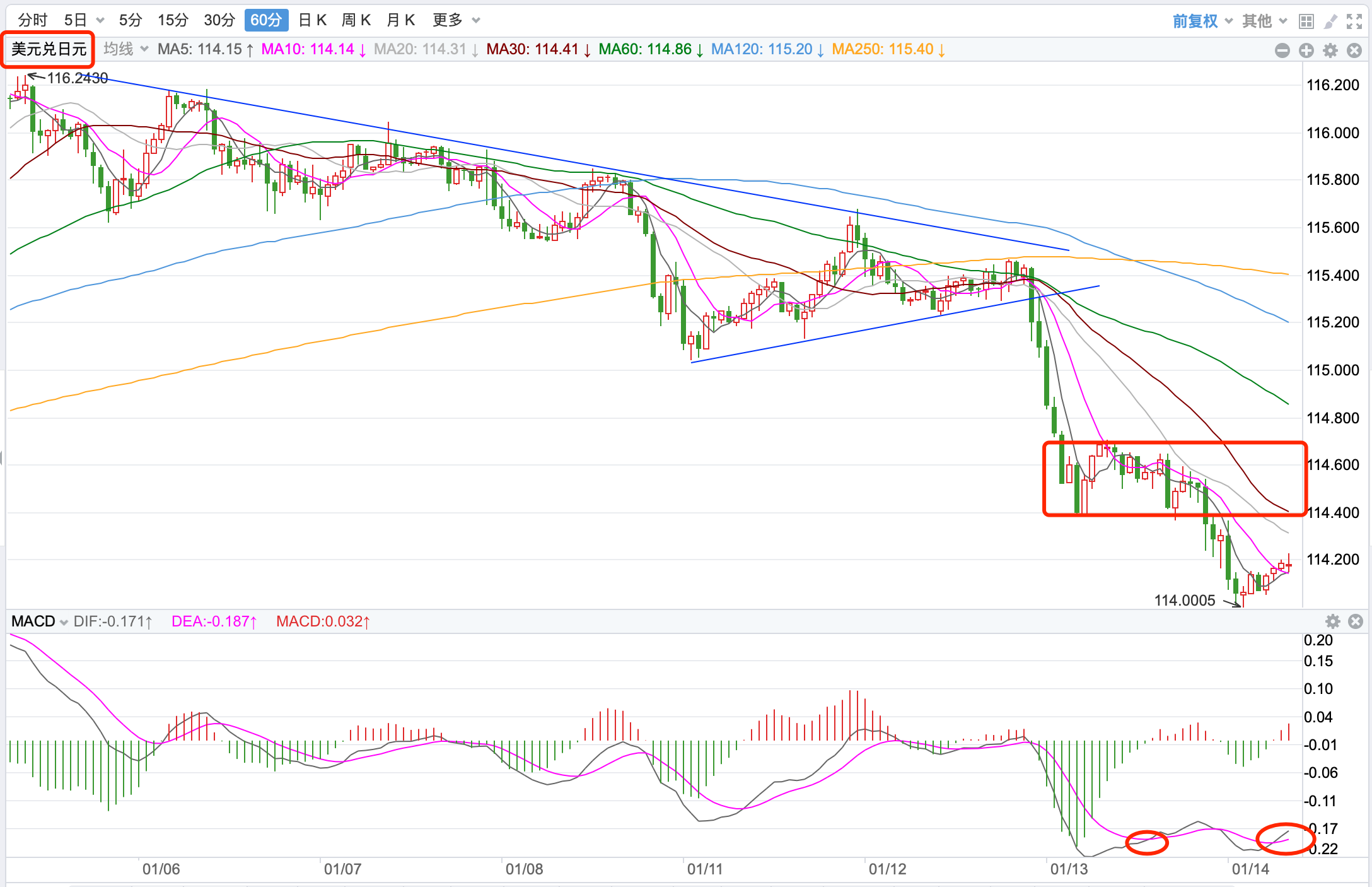 外汇市场,周四美元继续下行走低,未能重返95点关键位置,收低至94.85点附近,跌幅为-0.16%。欧元冲高回落走势,收盘在1.1455点,涨幅为0.11%。美元/日元继续下跌回落,收盘在114.17点,跌幅为-0.40%。美元/加元探底反弹走势,收在1.2520点,涨幅为0.10%。英镑/美元冲高回落走势,收盘在1.3714点,涨幅为0.08%。澳元/美元冲高回落,收至0.7281点,跌幅为-0.03%。美元/人民币离岸汇率超跌反弹走势,收在6.3645点,涨幅为0.04%。外汇市场整体走势看,美元指数继续跌破95点整数位向下运行,但是下跌幅度有限,非美货币多个出现冲高回落走势;日元单边走势在延续值得关注。