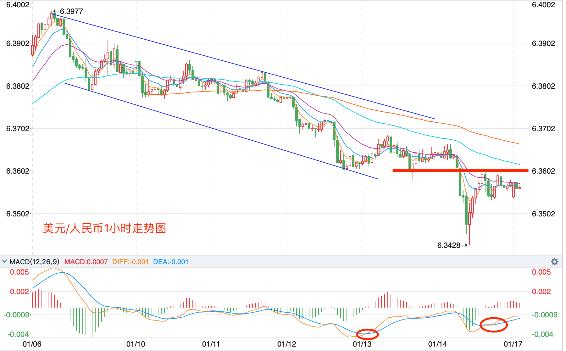 离岸价前期自2020年5月高位7.1964开启下跌走势,盘中跌破MA200均线的关键支持而下行走低;2021年5月触及6.3477点低位后开始震荡走高。2022年1月份保持在6.3-6.4之间震荡调整。当前行情日内有继续反弹调整的趋势。