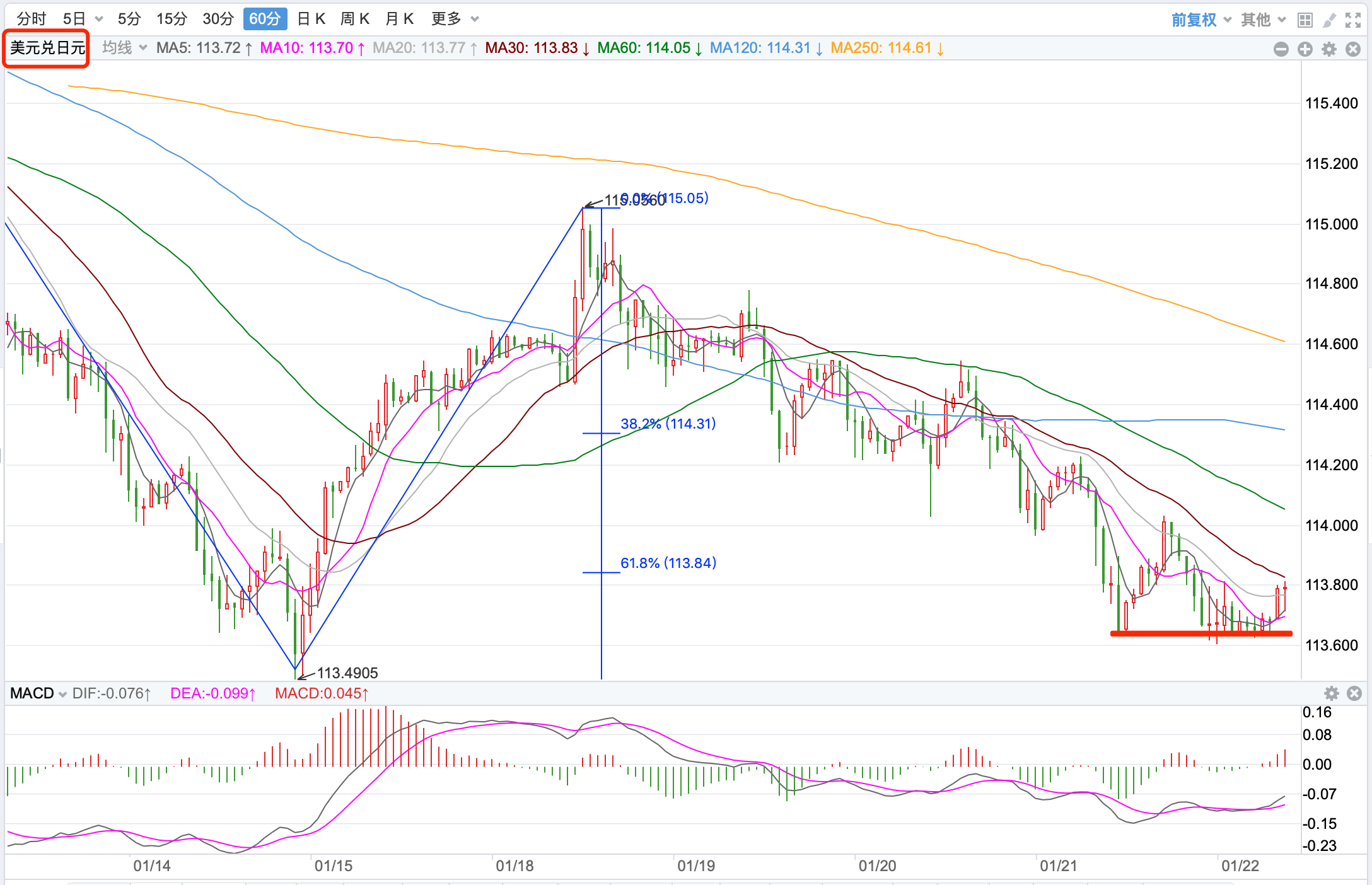 对美元指数走势构成影响的因素有以下几个方面,首先,上周五美国公布跌12月谘商会领先指标月率为0.8%,持平市场预期的数据但是低于前值1.1%;美国12月谘商会领先指标为120.8,高于前值的119.9;数据整体有利于美元的走势。其次,市场对于美国的通胀继续飙升,劳动力市场仍然积压有所担忧;美职位空缺数量接近创纪录的情况下,美国制造业价格指数已经开始滑落。就业数据也是连续两个月走低,从整体市场影响看对美元构成利多。第三,摩根大通近期认为“经济活动意外指数(EASI)最近几周已大幅下跌至负值区域,表明数据相对于市场预期表现不佳。美国消费将在2022年第一季度放缓,经济增长将从2021年第四季度的环比7.0%减速到2022年第一季度的1.5%。然而,不仅仅是零售销售,在截至1月15日的一周内,首次申请失业金人数飙升5.5万至28.6万,连续第三次增长,创下10月以来的最高周记录。第四,对于近期市场认为美联储更加鹰派加息次数会更多,美国银行分析师则认为,有些人将当前的放缓大部分归咎于奥密克戎疫情的蔓延,但现实情况是,造成目前的状况还有更多原因。“疫情结束的时候,就是美国开始衰退的时候。”“不会更鹰”,目前的美国经济下,美联储的任何加息周期都将是短暂的,随后最早在2023年就将再次实施宽松政策。综合来看,经济数据对美元指数走势有利,美10年期国债收益率对美元构成较强的支持。美元当前的走势依然是向上,对非美货币的下跌起到较大压力作用。