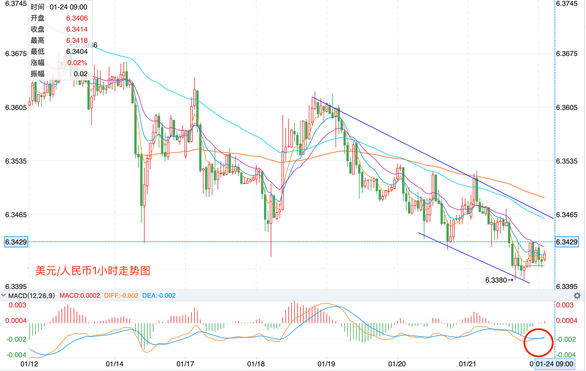 离岸价前期自2020年5月高位7.1964开启下跌走势,盘中跌破MA200均线的关键支持而下行走低;2021年5月触及6.3477点低位后开始震荡走高。2022年1月份保持在6.3-6.4之间震荡调整。当前行情日内有继续反弹调整的趋势。