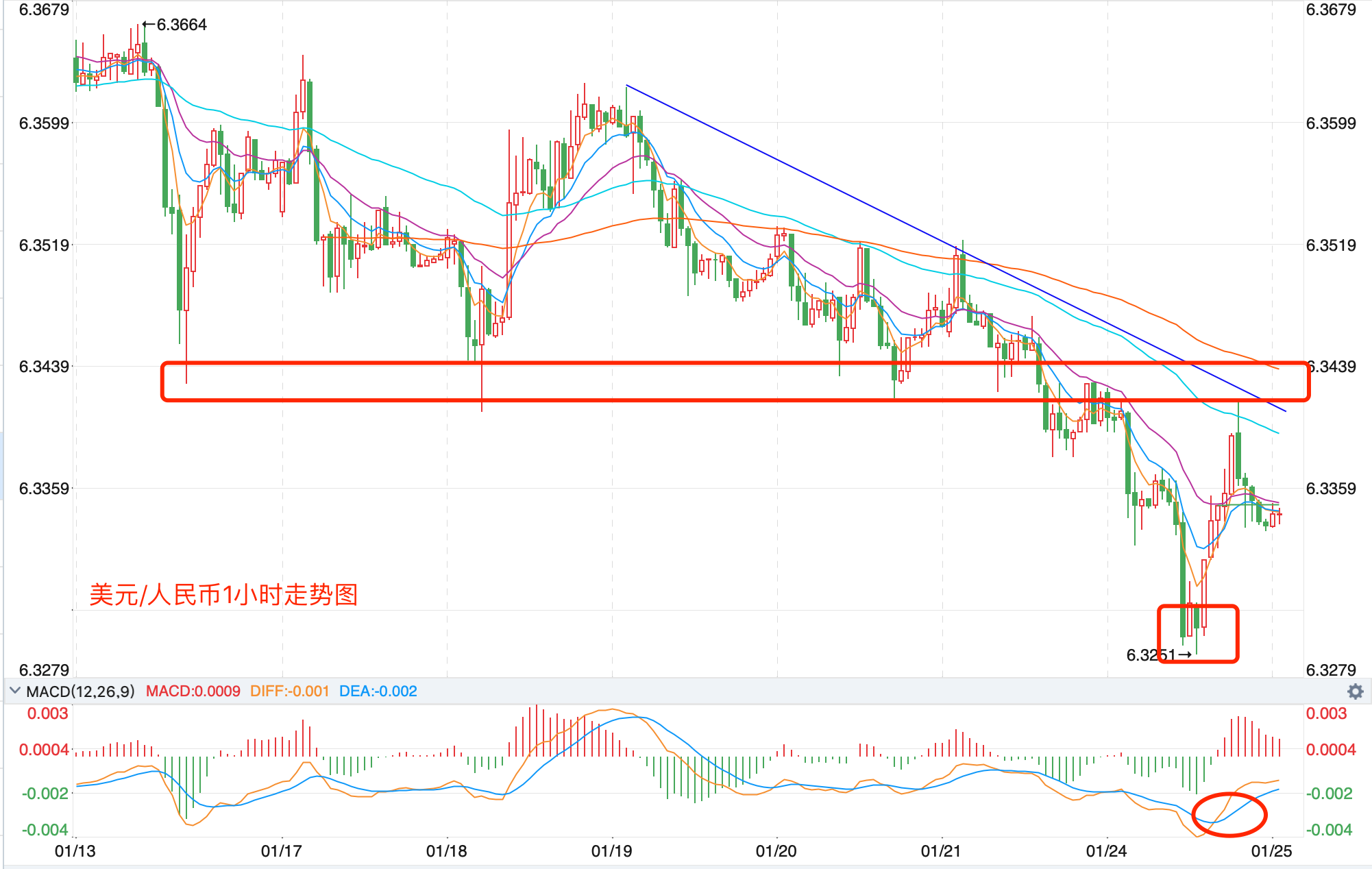 离岸价前期自2020年5月高位7.1964开启下跌走势,盘中跌破MA200均线的关键支持而下行走低;2021年5月触及6.3477点低位后开始震荡走高。2022年1月份保持在6.3-6.4之间震荡调整。当前行情日内有继续反弹调整的趋势。