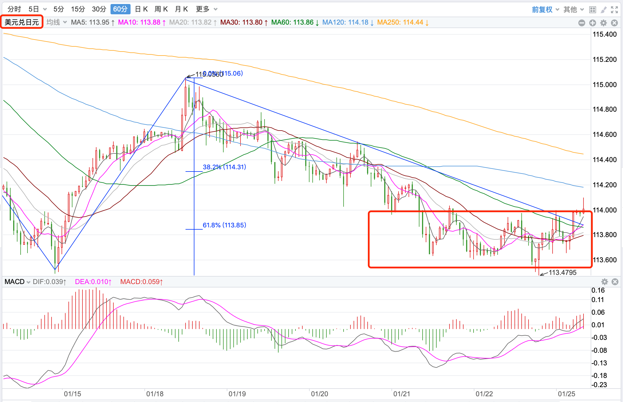 对美元指数走势构成影响的因素有以下几个方面,首先,美国公布的1月Marikit制造业PMI初值为55%,低于市场预期的56.7%和前值57.7%的表现;该数据综合PMI初值为50.8%,低于前值57%的表现;该数据服务业PMI初值为50.9%,低于市场预期的54.8%和前值57.6%的表现。数据对美元构成不利,有利于非美和贵金属的走势。其次,其次,随着美国美联储进入1月议息会议日程,美联储的各位委员将在2个工作日的时间里面就收紧宽松和加息进程、通胀、就业和奥密克戎对经济影响作出评估等等。在市场对收紧宽松和3月份开始加息没有悬念之后,目前市场焦点集中在加息的次数和缩表上。第三,目前彭博社的调查显示,四分之三的经济学家预计,美联储的本轮缩表可能仍只是让到期证券自然退出,而不是直接出售资产。缩表预计将从今年开始,其中29%的受访者预计的时间点在4月至6月,40%预计在7月至9月。经济学家对月度缩表规模的预期中值在400亿美元至599亿美元之间。调查还显示,缩表将使美联储资产负债表规模在今年年底降至8.5万亿美元,到2023年底降至7.6万亿美元,但仍远高于疫情前的水平。第四,针对今明两天的美联储议息,机构评价认为“鲍威尔本周不太可能改变他的语气,即使是在股市下跌的情况下。如果鲍威尔的讲话听起来鸽派,那可能对市场有利,但我们认为最终结果可能并非如此。”综合来看,经济数据对美元指数走势利空,美联储议息机构观点中规中矩,美元当前的走势依然是向上,对非美货币的下跌起到较大压力作用。