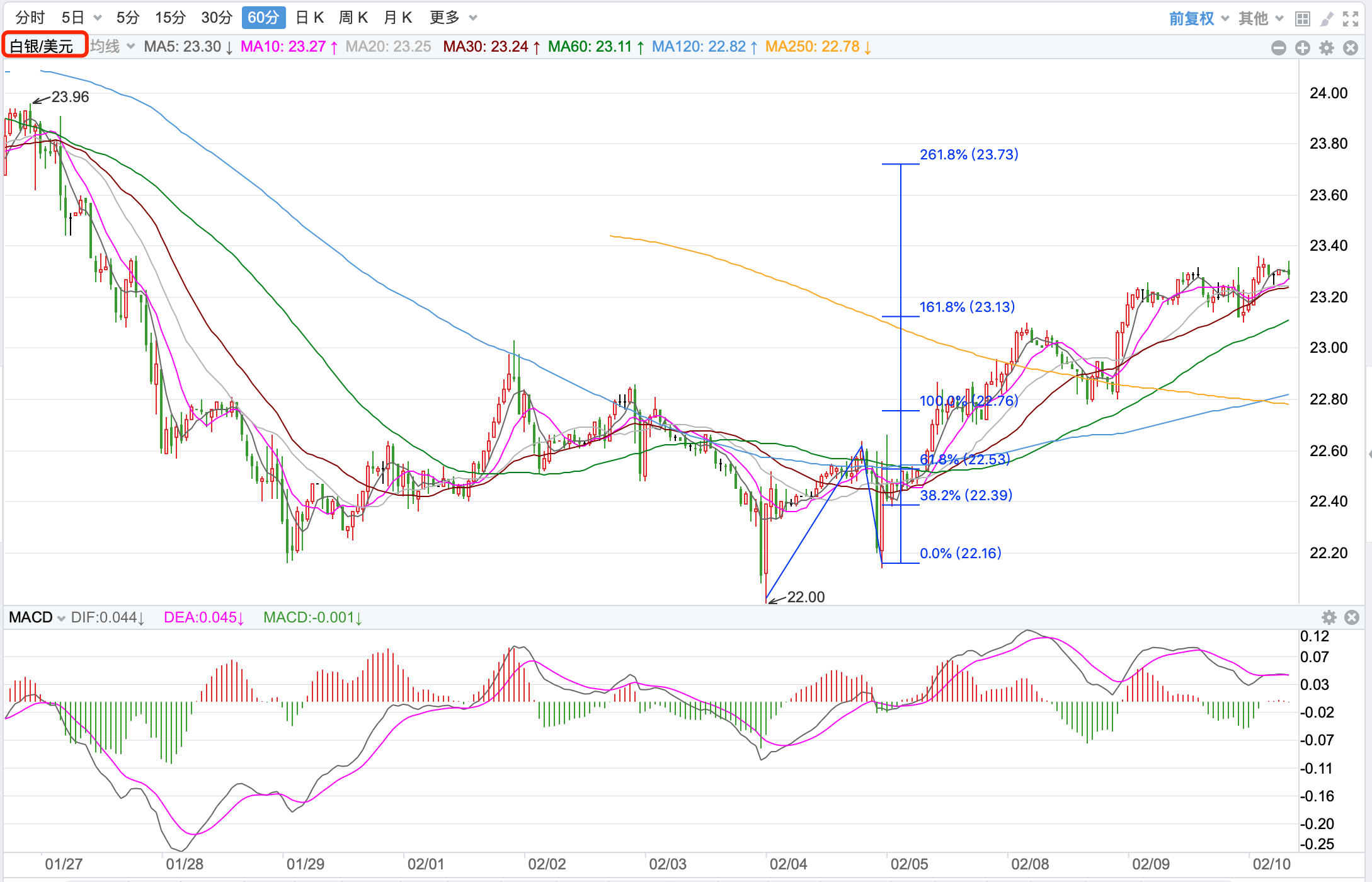 美元指数前期持续上涨在2020年3月份创出102.99点的高位后一路震荡回落走低,2021年1月份触及89.206点的低位后,开始向上持续震荡走高;2021年11月份指数突破MA60周线后保持其上运行,也已经打开了中长期上升的空间。当前指数站稳中期走势的支持上运行,当前日内短线行情有继续反弹的趋势。