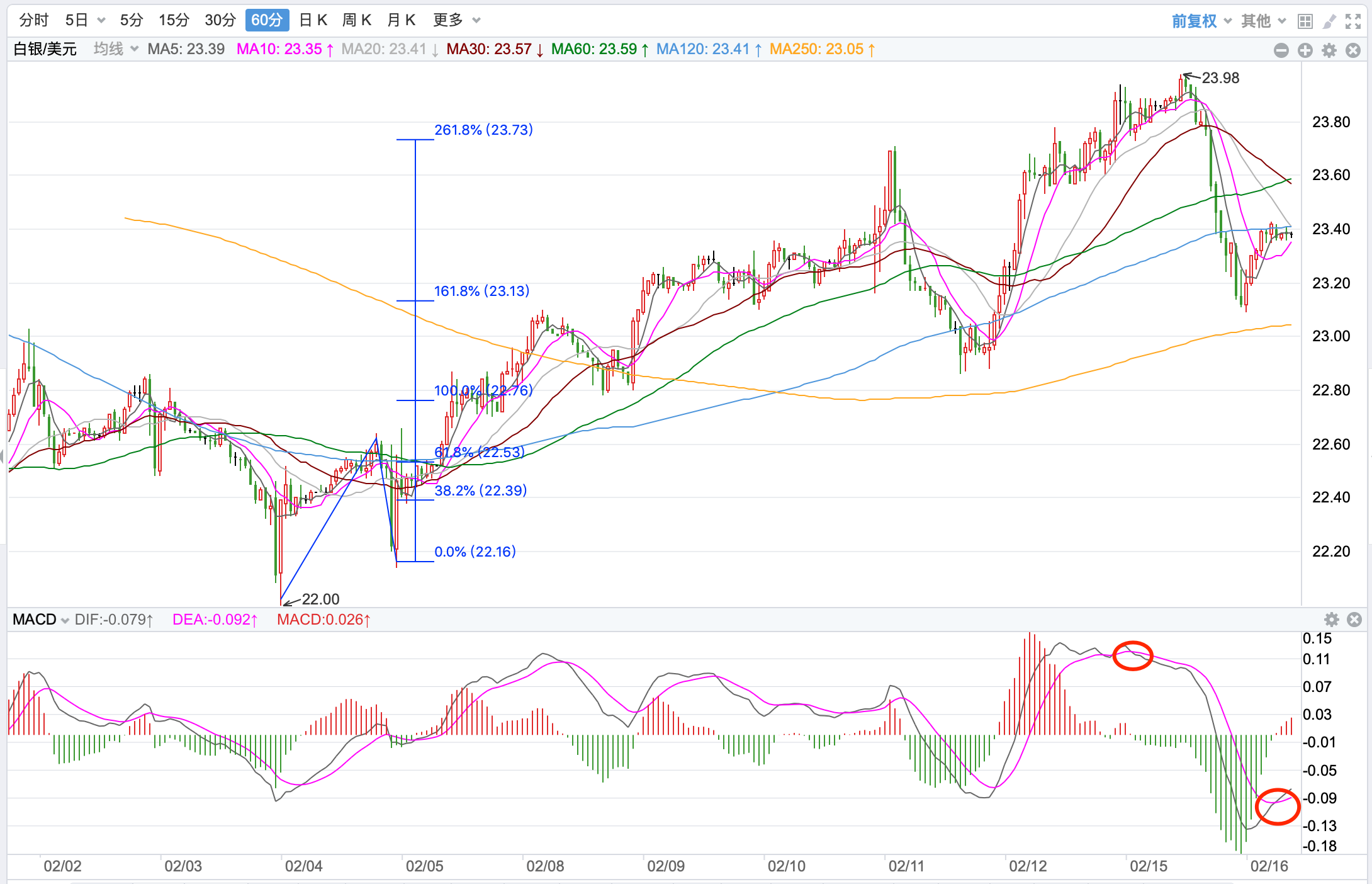 金价从1445美元/盎司的前期低点一路展开上行,创出之前2075的新高后,先回落后持续震荡下跌达到15个多月。当前整体价格在MA200上下运行,MACD指标弱势震荡,形成触底反弹的走势。近期短线1760美元是多头关键的支持,日内短线有回落下的趋势。