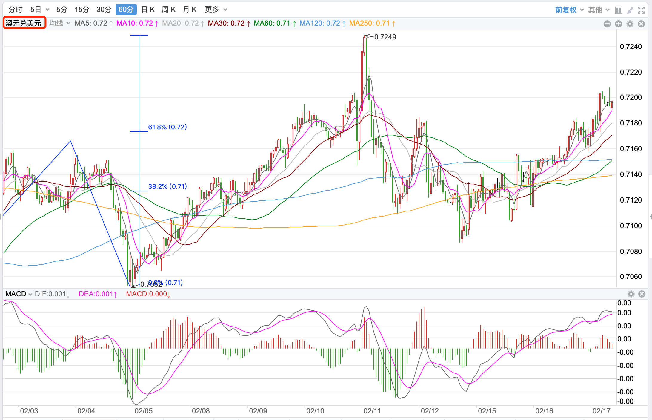 前期自2020年3月底企稳0.5673低点开启上涨走势;盘中突破了MA200均线的关键阻力而上行走高;2021年2月触及0.80072点高位后开始震荡走低,8月底企稳在0.7114点展开反弹走势再度终结,目前重回8月低点调整走势。当前日内短线行情反弹向上的趋势。