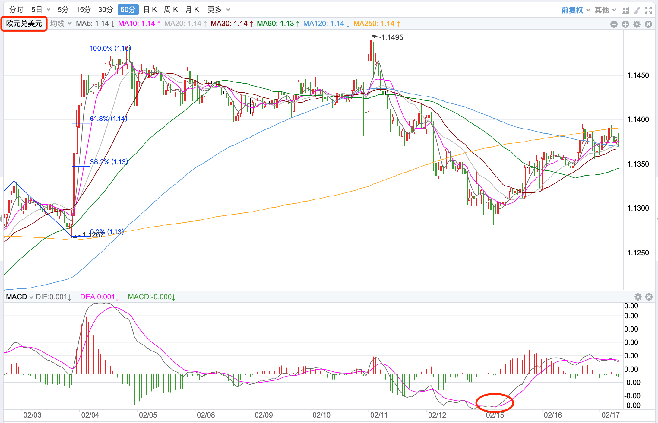 前期自2020年3月底企稳1.0635低点开启上涨走势;2021年1月触及1.23495点的高位后持续震荡下行。2021年11月跌破60周MA均线支持,中长期多空分水岭的支持跌破,行情处在回落调整的下行走势中。当前日内短线行情有反弹向上的趋势。
