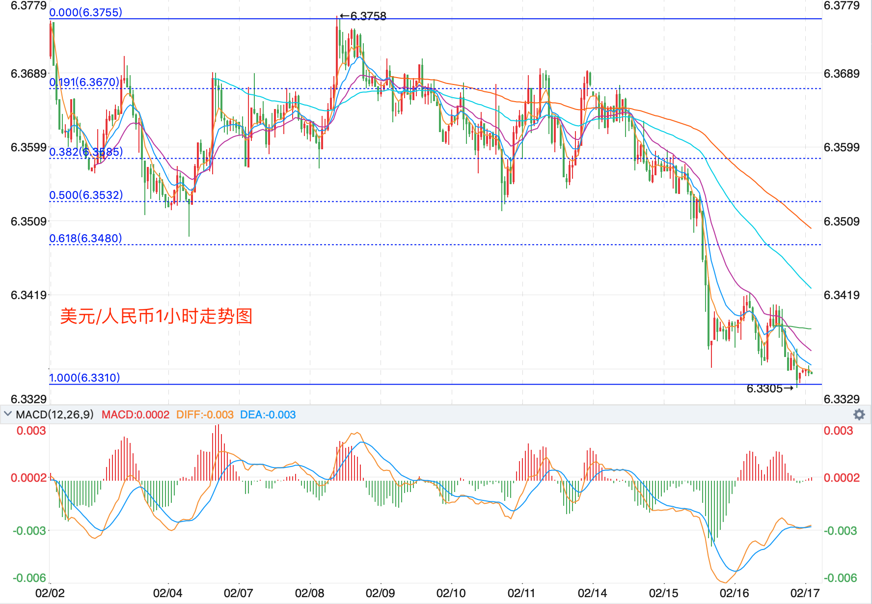离岸价前期自2020年5月高位7.1964开启下跌走势,盘中跌破MA200均线的关键支持而下行走低;2021年5月触及6.3477点低位后开始震荡走高。2022年1月份保持在6.3-6.4之间震荡调整。当前行情日内有继续下跌的趋势。