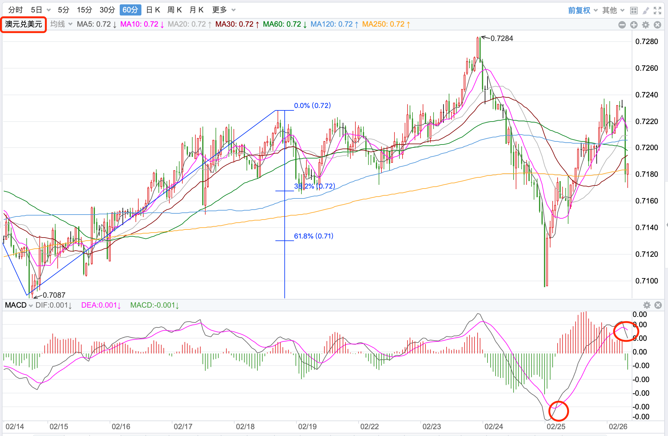 前期自2020年3月底企稳0.5673低点开启上涨走势;盘中突破了MA200均线的关键阻力而上行走高;2021年2月触及0.80072点高位后开始震荡走低,8月底企稳在0.7114点展开反弹走势再度终结,目前重回8月低点调整走势。当前日内短线行情下跌调整的趋势。