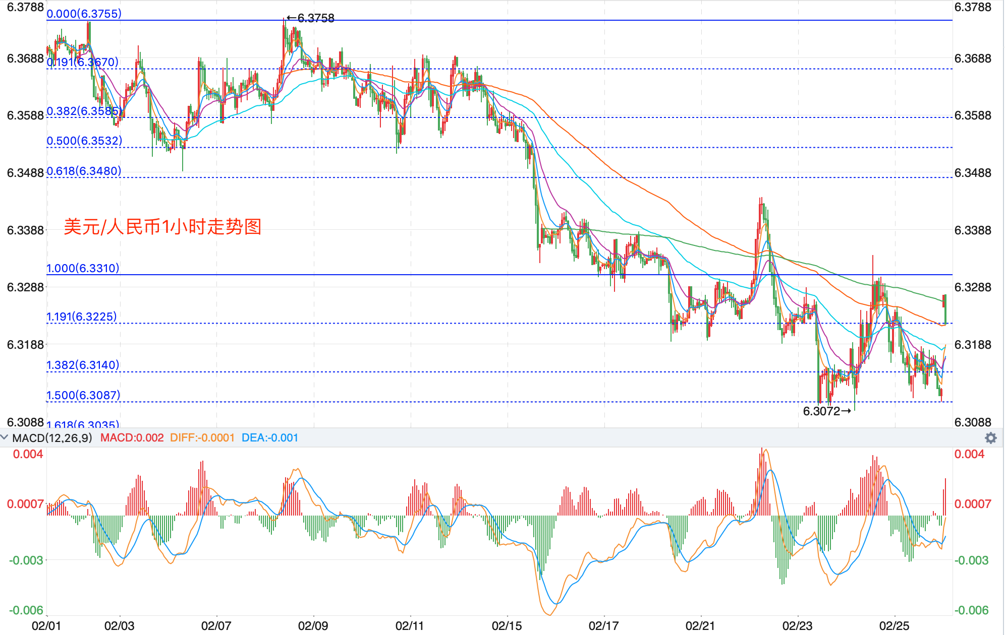 对外汇市场构成影响的因素有以下几个方面,首先,汇市受周末俄乌展示依然弥漫的硝烟影响今早出现了逆转上周五收盘的走势,周日俄罗斯总统普京会见俄罗斯国防部长绍伊古和总参谋长格拉西莫夫时表示,西方对俄罗斯不仅在经济上进行遏制,而且某些领导人的发言越来越具有侵略性,因此命令俄罗斯战略威慑力量进入特殊战备状态。这意味着俄罗斯针对美西方升级制裁的对抗性加剧,虽然不至于打核战但是当前的情形却是俄罗斯无法后退一步,必然提升汇市紧张气氛。其次,俄乌战争对全球通胀的影响也已经开始引起关注,世界银行行长戴维·马尔帕斯2月27日在媒体上警告称,俄罗斯在乌克兰的军事行动将对包括俄罗斯在内的全球经济产生可怕的影响。马尔帕斯表示,食品和石油价格可能会因乌克兰危机而继续飙升。这或许还将对美联储在3月份展开对加息产生极大的影响,引发市场担忧。第三,俄乌双方的谈判终于登场了,目前和平谈判将于当地时间28日早上在白俄罗斯戈梅利州官邸举行。谈判无疑带来和平解决的希望,因为俄罗斯总统普京此前表示俄不是入侵乌克兰,而是要保持乌克兰的非军事化。第四,美国上周五公布的1月PCE物价指数年率为6.1%,高于市场预期的6.0%和前值5.8%;美国1月个人支出月率为2.1%,市场预期是1.6%和前值是-0.6%。美国2月密歇根大学消费者信心指数终值为62.8%,高于市场预期的61.7%的表现。整体数据看利多美元的走势,不利非美货币和贵金属的走势。以上几个方面使得外汇市场充满了动荡,避险货币集体走高的局面获将延续。