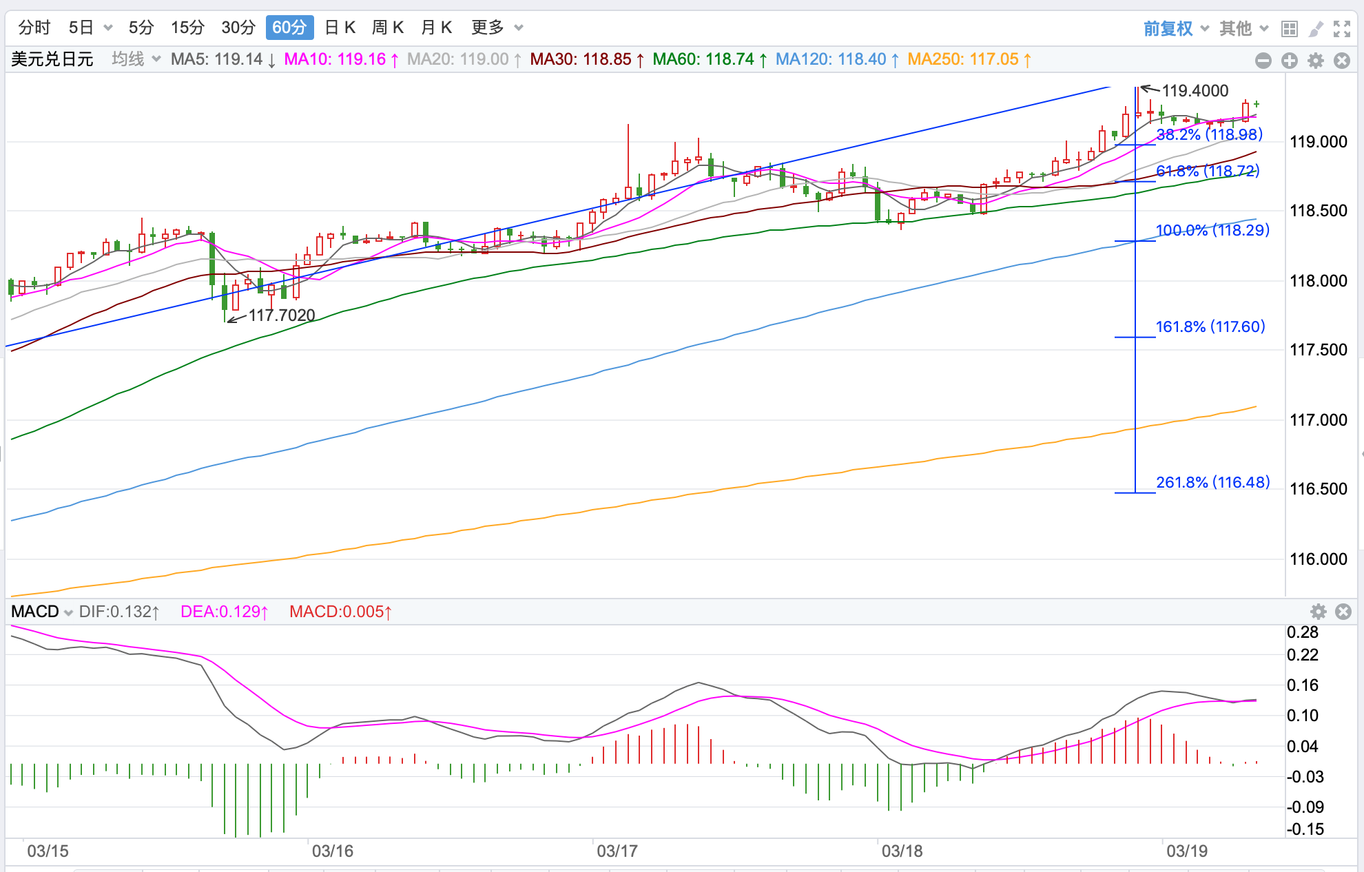 前期自2020年3月底企稳101.178低点开启上涨走势,触及111.71点高位后震荡回落走低;2021年1月触及102.560点的低位支持后震荡向上,2021年3月份中期突破MA60周均线阻力打开上行空间;中长期走势处在持续反弹趋势中未变。当前日内短线行情继续上行趋势,注意冲高回落的可能。