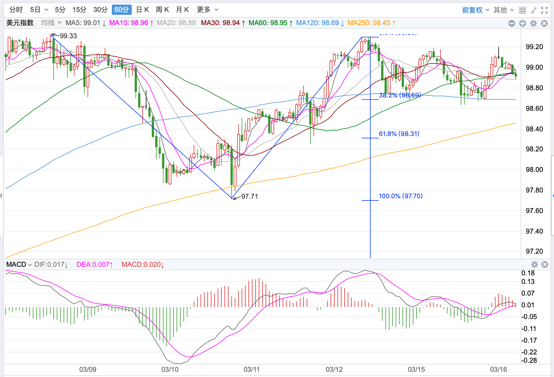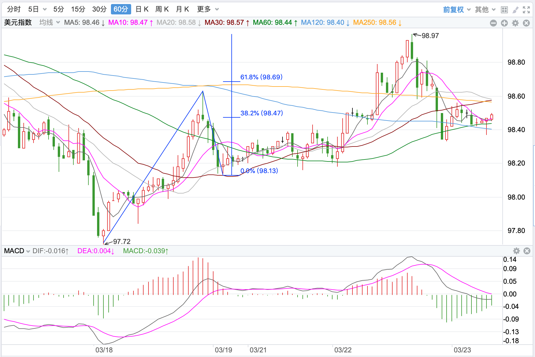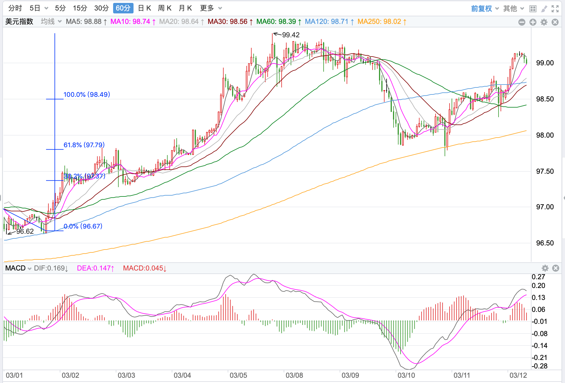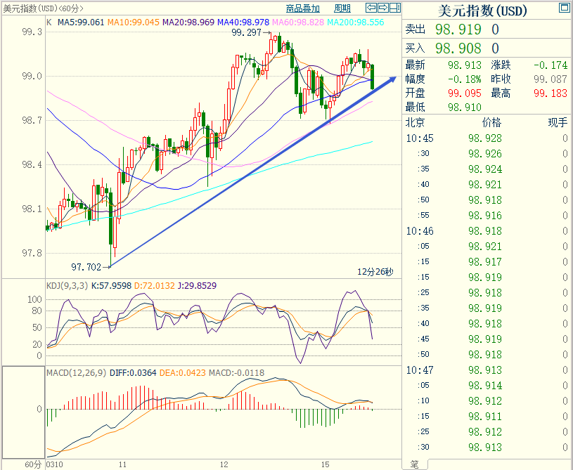 行情走势早报 外汇市场周一避险情绪依旧高涨,美元一度回落但是探底反弹尾盘收高至98.96点,下跌0.056%。欧元探底反弹收在1.0943点,跌幅0.29%。美元/日元继续大幅上涨,收在118.182点,涨幅为0.78%。美元/加元大幅反弹收至1.2819点,涨幅为0.55%。英镑/美元继续大幅下跌,跌破1.3点整数位,最终收在1.3030点,跌幅为