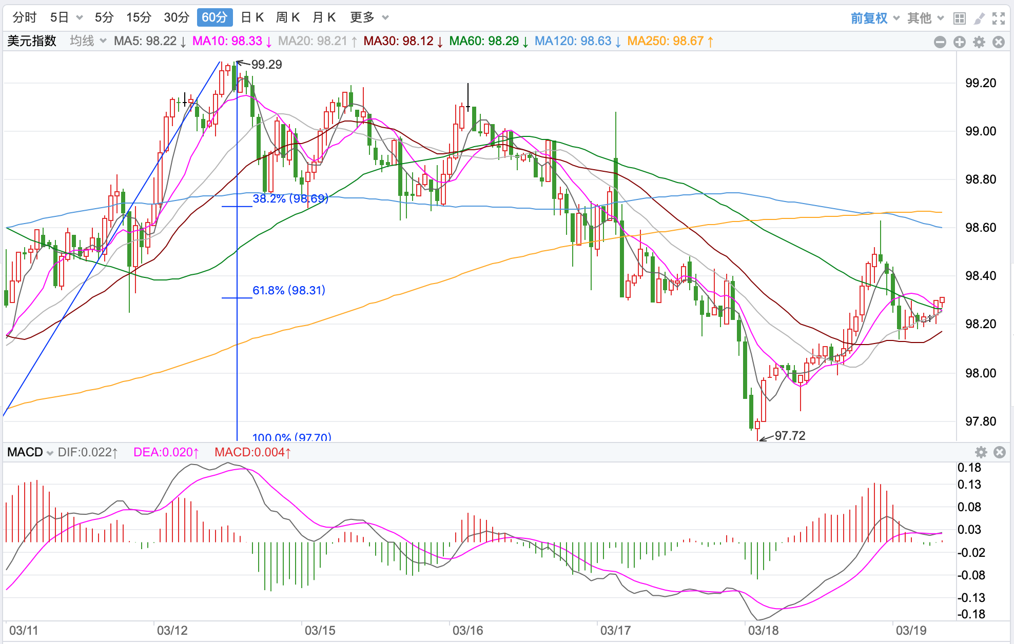 行情走势早报 外汇市场上周五避险情绪依旧高涨,美元继续反弹尾盘收高在99.124点,涨幅达到0.63%。欧元继续回落收在1.0929点,跌幅-0.69%。美元/日元继续小幅反弹,收在117.288点,涨幅为0.99%。美元/加元回落反弹收至1.2748点,跌幅为-0.16%。英镑/美元大幅下跌,收在1.3039点,跌幅为-0.34%。澳元/美元回来大跌收0.