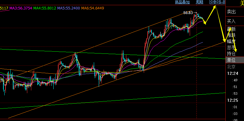 周线方面,上周虽收报阳线进行反弹,看似力度大,其实也是阴阳循环的整理,本周有望收阴回测;日线方面,虽连阳反弹,但价格已经压制趋势线阻力,上周计划的57中空,本周一早间反弹的高点56.85也极有可能直接见顶压制,但希望还能虚破日线趋势阻力56.85给到相应高空的最佳点位;按照小时线上行通道,上轨压力在57.3,也是今日计划的做空点;另外,支撑需关注凌晨横盘位置56.2-56.1,这里若直接先大阴破位失守,高点肯定见顶了,那么做空就提前布局下看至少55位置;对于原油不管大方向月线还是中期方向周线,都明显的空头压制,这点毋庸置疑,短线处于反弹调整中,等待压制即可;