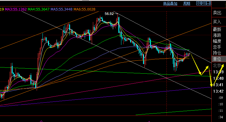 这几日的走势也符合个人判断,周一价格触及日线下跌通道的趋势强压后迎来逐步的震荡下跌,虽较为可惜未抵达57及上方中空机会,不过盘中也几次给出做空,周二55.45空,周三55空,最低跌至54.4成功盈利,对于今日来讲:第一,日线短期均线趋势死叉,今日反弹仍旧会跌,继续震荡看空;第二,小时线维持下跌通道,阻力55.2-55.3就可直接干空,下方还是继续关注54.6-54.4,强支撑53.7,触及这里可以多;第三,4小时级别站不稳10日上方,短期继续处于压制;因此,隔夜的探底拉升并非能延续太久,这个走势似乎雷同9月25-27这三日的走法,不断的刷新低,半夜又不断的拉升,属于震荡氏下跌,较好就收即可;