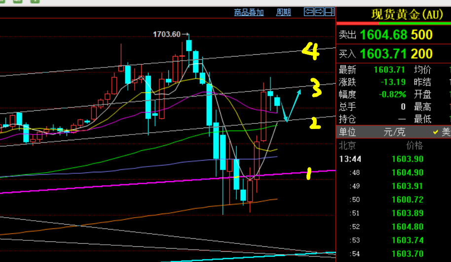 昨日黄金先拉高后回落,日线冲高回测收报纺锤体小阴K线,以修正来对待,昨晚至目前一直围绕1600-1625小区间整理,沉默的背后在酝酿下一次的主力行动,今日分析如下:第一,日线底部连阳上涨后,昨日收阴,整体短期趋势还是偏强对待,不过尽量不去追高,有下调的风险,如图通道3线昨日只是刺破,并未站稳,今日有望试探通道2线支撑,也是靠近5均线位置1580一线,这里可以狙击一次低多的最佳位置;第二,4小时级别,短期均线开始死叉,并且macd也即将出现顶部死叉,要谨慎先跳水下,靠近中轨位置以及50%分割位置1577可以狙击一次多单,1645成为暂时的强压,刚好压制不上,也是这轮上涨能否继续走强的关键,一旦再度拉高二次受压1645大幅回测,那么从1450底部起来的这波避险拉升就会告一段落;第三,小时线图,围绕1600-1625之间横盘时间太长了,此时上车做多过于激进,存在陷阱感,一般容易出现突袭大幅跳水,再企稳逐步反弹上攻,趋势强支撑是1558-59,也是3月24日盘中起涨点,以此作为防守,一旦出现跳水拉低,可择机小波段干多一次,因为前面强势涨了这么多,一下子很快打压回去是不现实的,出现急跌跳水整理,应该还有二次测试高点的机会;总结,操作上建议回测1580-1577逢低小波段多,损1558,目标1640-45; 短线的话,设7-8美金损,拿15美金及以上离场即可,虽预期可能跳水,但不建议去空,遵循日线的顺势原则,而且随时可能还会出现避险的刺激,后市二次测试1645压制形成双顶,会考虑波段再去开空;