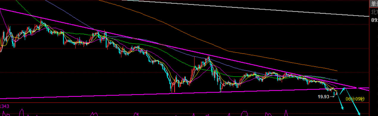 上周22-24反复震荡了三日后,周五迎来走弱下破,底部一直横盘不反弹,反而弱势延续,这是空头的再次来袭,操作上则保持空为主,今日开盘跳空低开至20关口,虽暂时未有效破位,不过本周恐怕坚守不住;对于本周及后市的思路分析:第一,长线油价从08年一直压制趋势阻力线下方运行,大趋势空一直未变,这点前期多次强调;中期周线级别连阴,空头动能进一步的释放,也是空;第二,短期日线级别压制短期均线下滑,单阳连阴模式,也是空头,不过macd出现空头缩量,这可能会多次触发拉低反弹的走势,也即是说价格破位20关口后,下方随时会出现超跌反弹,但反弹暂时不足以改变空头趋势,因此底部偏弱震荡或走弱还会持续延续;第三,4小时级别横盘后,均线再次空头排列,上周五只是一个开始,本周会延续跌至,见反弹就是做空时机;第四,早间低开后反弹压制21-20.9,这是今日的第一阻力位,往上是缺口的回补21.6-21.7,这两个都可作为一定防守,去择机看空,目标起码下破20,看至19、18,乃至波段15一线,不过需注意,原油价格一旦拉低,也容易超跌多次反复的反弹,需严格带好损;