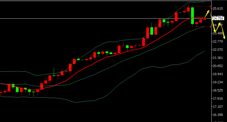 昨日亚盘早间原本指出23存在反抽618分割压力,触及考虑空,但价格当时只触及22.7就跌到了22,而再次反弹到23肯定是不对的,因而欧美盘强调油价逼空要延续上行,盘中给出几次回测做多,但都无法下滑给上车机会,观望一天未下手;半夜一路逼空维持上行,今日延续到了26高点,这一轮逼空的上涨力度是比较大的;对于今日来讲,需要注意几点:第一,早间开盘先续涨至26,而隔夜持续上涨后,第二日继续先拉升,属于一种惯性释放,随后出现了一根小时线级别的大阴,说明获利盘开始出现了,今日要重点关注二次试探26下能否形成双顶压制;第二,虽然小时线大阴回调力度大,但并未连阴,且中轨存在支撑24-23.9,另外4小时是处于连阳后首次单阴,因而不能看着大阴而去追空,谨防还有二次的试探高点,可以先依托24-23.9逢低短多,25.2及上方压制再考虑高空;第三,持续逼空了几日,昨日可以说是一种加速上涨的感觉,今日欧盘一旦无法延续破高,就存在短期见顶的风险,毕竟大趋势空头这一点始终不变,不要涨了几天,就忘了之前抄底的痛,从月线看,二次试探6.5美元逢低才是真正抄底的时刻,目前为时尚早;操作上,亚盘24-23.9逢低先短多,欧盘时间段26下方出现压制试探空,只有二次上拉且还是压制26,再下跌破位24低点,才能有效见顶,记住这个细节;