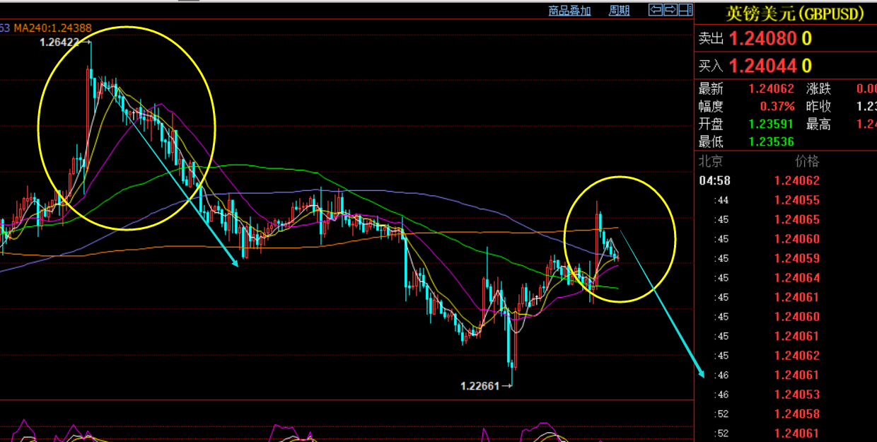 最后,讲下英镑和欧元的波段方向:本周处就指出英镑会打压一波,结果是符合的,从1.250下跌至1.226,周四周五尾盘出现的反弹主要是因为美元短期下跌了一波,但笔者判断美元再次出现短期支撑表现,下周有可能会继续反弹上涨一波,对于英镑来讲,下周又有一波波段做空的机会,同时小时线级别如图,也出现了惊人的雷同走法,一根大阳拉升,但并未延续,之后连阴下滑,这是高点出现见顶的表现,下周就一个思路,以1.24685作为压力防守,激进直接波段空,稳健1.243下反弹波段空,下看1.226和1.210;