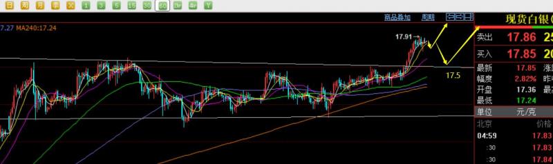 白银周评:本周也给过多次短线做多计划,只要做多,耐心等待,最终都会盈利,因为白银的运行格局已经属于多头趋势的发展过程,很抗跌,周五突破站上了17.5,价格进一步的拉升至17.9,为下周打开了进一步上升空间,下周以17.5作为强有力支撑点,逢低只能顺势做多为主,短期内上破18是大概率了;