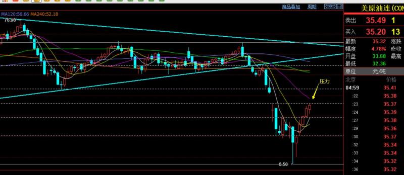 原油周评:原油从4月28日底部10美元开始支撑后,表现的非常抗跌,运行的模式以连阳单边上涨+高位区间横盘+连阳上涨来展开,中途高位横盘有两个阶段,一个以24作为命脉支撑,一个以31作为命脉支撑,每一次整理多次触及命脉点都无法有效下破,最终又上涨破前高,那后市到底能否打压? 还会出现底部的试探给到抄底机会吗?这是市场上较多人所想要的回应,从月线长线级别分析,笔者仍旧坚持空头趋势不变,连阴后,5月份只是首次出阳,往往是作为最后一轮从65.6美元单边空头打压后的一种短期修正,不足以改变空头趋势压制,并且关键的趋势阻力线从08年开始一直存在,也认为不太可能一直会上涨触碰此长线的趋势压力位,在这之前肯定会有一次打压,起码20美元是问题不大的,本月是收了很饱满的一根大阳,6月份初会有延续的反弹过程,不过10均线下会出现冲高回落的K线,类似05年4月份和5月份的形态组合 ,一旦落成,今年下半年会进行一轮油价打压,重回20美元下方,年底或明年再依托底部6.5美元上方,进行慢阳回升,一路上攻试探08年以来一直压制的关键趋势阻力线,届时才会出现真正的底部抄底时机,而近期很有可能会随时终结反弹; 周线中期级别,关注中轨压力38以及50%的分割压力36,不宜追高;日线级别,关注今年3月份大幅跳空后反弹的高点36.3压力,目前形态看,依旧是抗跌维持反弹;4小时级别在酝酿超周期的背驰压制,按照通道发展,极限可以逼空上扬至39美元才会形成双背驰超周期的压制走跌,下方命脉目前是31美元;关注下周初的运行强弱,若日线出现小连阳发展,那么命脉的位置有31会上移至34一线,另外36-36.3阻力继续突破逼空强攻的话,下一个就会试探39美元;短线布局方面:周五后半夜破高延续拉升,周一回测不管如何都要布局一次跟多计划,支撑关注34.4,极限33.7,可以分批多,阻力目标35.5和36-36.3,预计油价还会出现高位反复大洗盘的较大可能,操作上随时保持警惕;