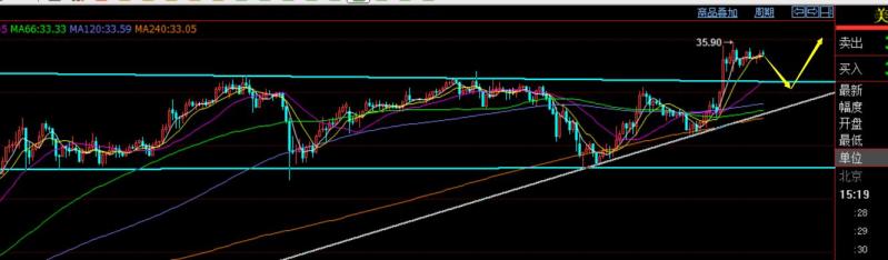 具体的解读周末已经给出,它的运行模式依旧很抗跌,隔夜一路上涨破高,今日主要的思路则是回测跟多一次,当前价格支撑34.7,也是小时线收盘前回测的低点,力度并不大,直接多又担心它大幅洗盘,操作上尽量不高位追多,等回测一波了,再介入,支撑关注34-33.7,隔夜涨幅回测的50以及618分割支撑,到位跟多一次,本周阻力36-36.3,看这里如何,若还突破上行,则强压上移39一线;