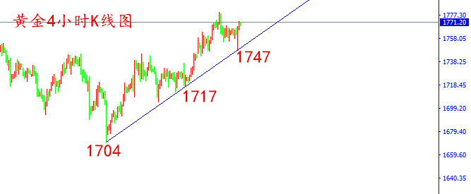 4、开盘如何去操作,我给几点建议,针对空仓的朋友,如果仓位大,建议开盘直接试仓进场,如果有2个小时站稳1771一线则可以加仓多单,看1778附近,如果破位可以继续持有,操作短线可以把止盈放在1778附近即可,止损5美元,如果试仓失败,则等回踩调整。稳健短线交易者可以在1765附近去尝试一波多单,止损给到1762合适,2-3美元止损去博取15-20美元的利润,我认为合适。