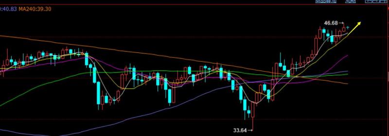 原油方面:上周迎来一波短期走强延续,最高冲击46.7美元一线, 日线高位调整结束,中期则延续上涨,操作上回测低多为主;上周五半夜回测低点是45.8,往下强支撑区域则集中45.3-44.8,依托此区域上方做多继续看上行;日线短期5日和10日均线支撑聚集于45美元上方,本周大体上,只要有效守住45关口,将延续中期的上涨;