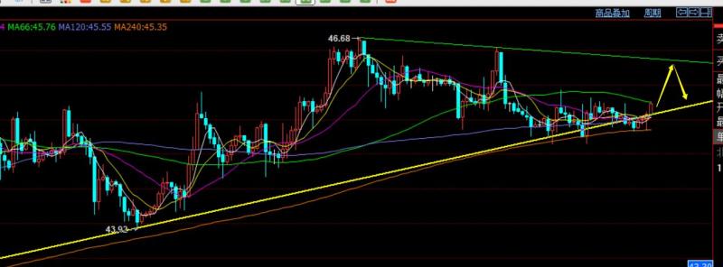 原油方面:昨日整体波幅不大,包括现在也没多少波动,多观望为主,还是继续等46及上方短空机会,以46.7高点作为防守,看冲高回落的短期调整,45破位了,才能试探日线中轨44-43.5;