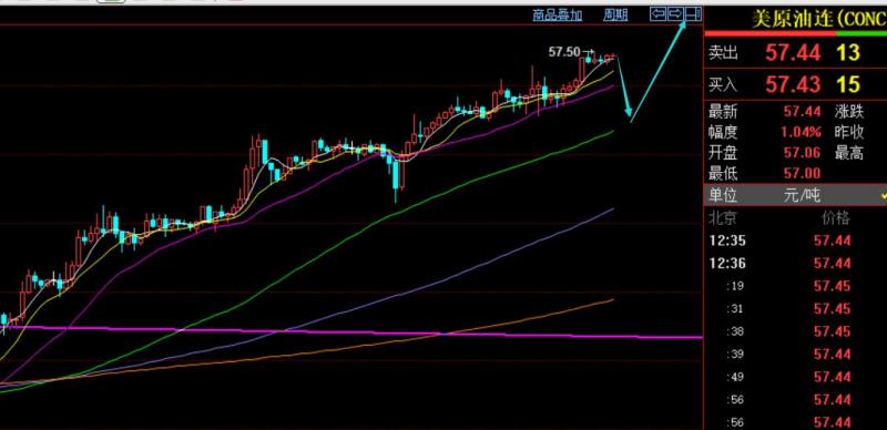 原油方面: 日线连阳发展,持续不断的逼空上行, 短期还未见顶,但指标依然是严重背驰和超买,短线上先继续跟随逼空走法,回测跟多,关注56.5一线支撑,另外还有56一线,触及企稳多,阻力57.5; 日线只有出现大阴吞没几阴或者大阳加速后,才能概率出顶;