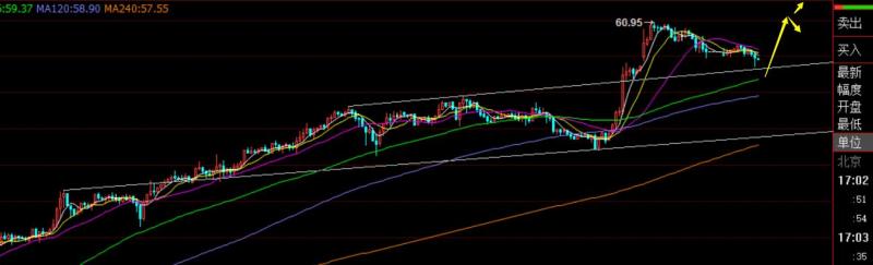 原油方面:一路的强势上攻,昨日试探了月线趋势阻力61一线,也是作为长线空头下一个关键的拐点,61能否有效压制至关重要,短线上59上方还是具备一定支撑,逢低可多;可以多观望油价,等待关键位置再择机多空下手;