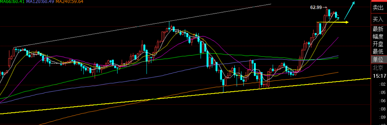 原油方面:底部58.8-60区域盘整几日后,担心上冲至618分割压力60.8容易变弱,结果还是发生了,价格半夜也迎来短期的多头延续上涨,早盘即将试探63关口;同样的,起涨点是61.5,价格也突破隔夜高点,且拉升力度大,那么也要强势去跟多,顶底支撑62.2-62参考点,风水岭61.5为止损,看63及上方;