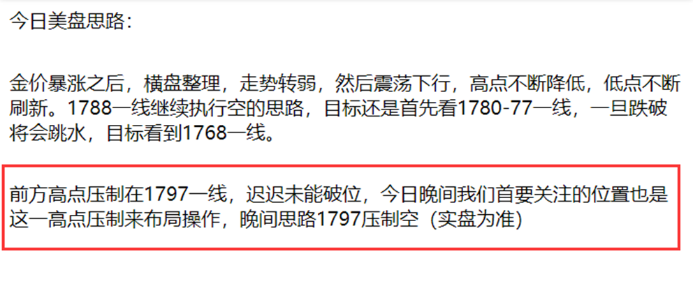 国际黄金美盘盘中冲高,再次止步1798一线,还是没能突破1800关口,这已经是第五次试探1800关口未突破,在形态上就构成了5重顶,超级可靠的放空形态,这样的形态你不去放空,难道去追多吗?所以,笔者1792继续放空,结果金价暴跌1773,将近20美金的空间,这样的行情才叫刺激,才叫做单。