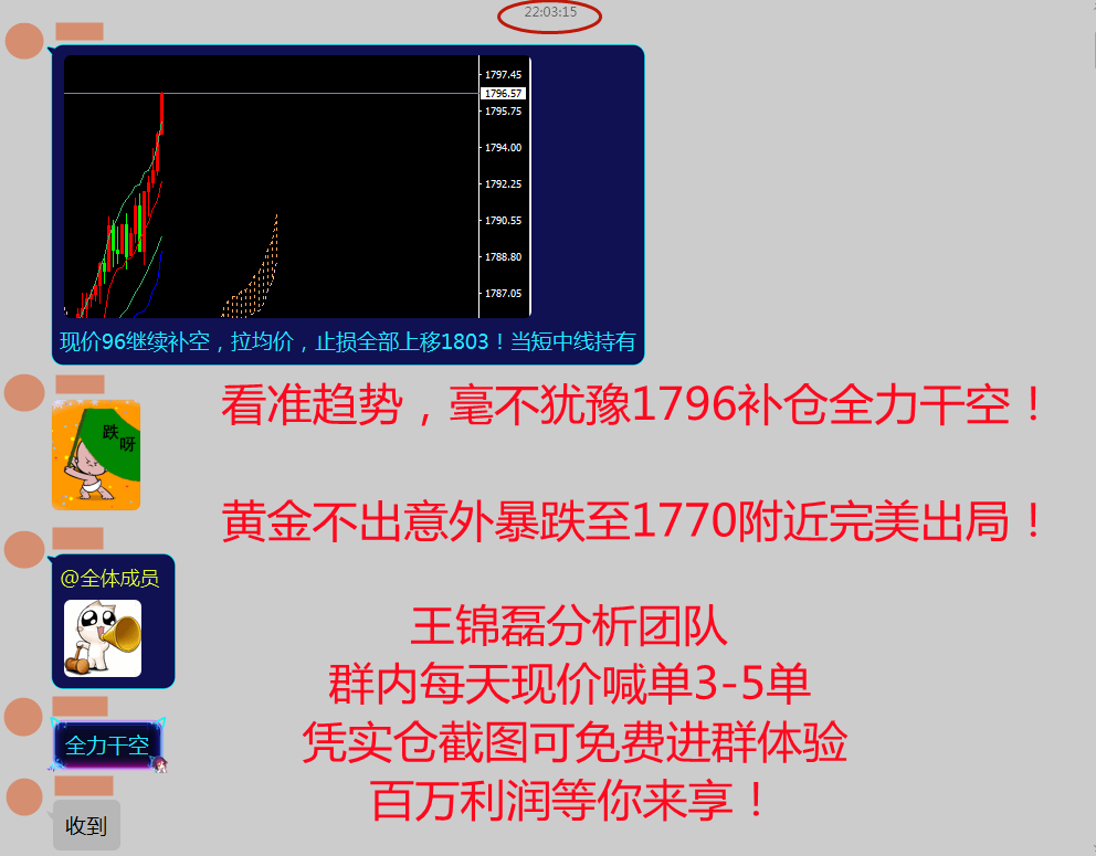 市场行情每天都是千变万化,我们有强大的分析团队,做的每一单都是经过深思的判断,要保证每单都能获利出局!每天两到三单的操作不求一夜暴富,只求落袋为安!利润十分,我独取九分,一分靠运气,八分靠实力!一天两天是运气,那一周呢?两周呢?无论是实盘还是群发策略,老师都是实时现价喊单! 每单进场都有理丶有据、公开公明、可免一费进群体验考察!