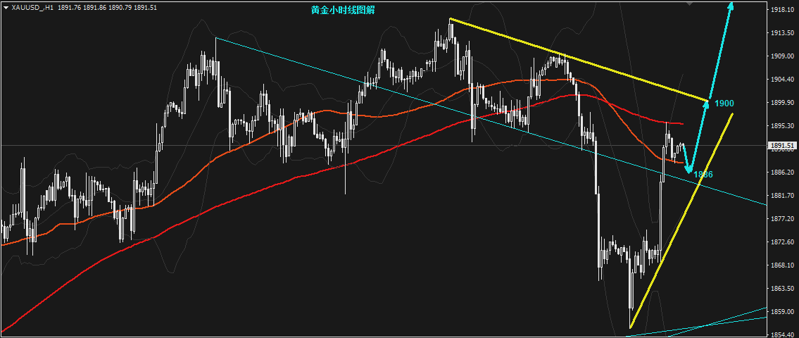 黄金1886上干多,止损1880,目标看1900,突破转中长线持有