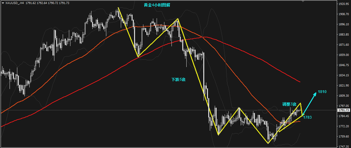 黄金回撤1783附近继续干多,止损1776,目标看1800上。