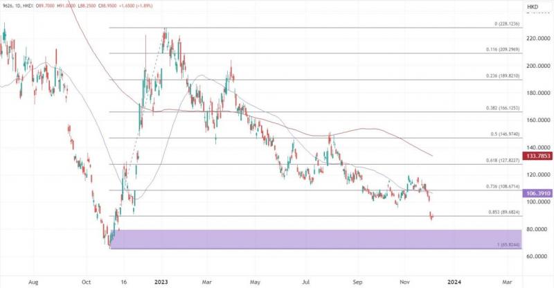 ATFX港股:上周哔哩哔哩(09626)公布第三季度业绩后股价跟随大跌,港股创下自2022年11月以来的盘中最低水平。财报发布后,B站美股盘前一度跌超6%。