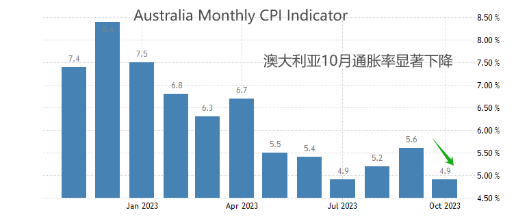 本周二11:30,澳大利亚央行将公布至12月5日澳洲联储利率决定,市场普遍预期决议结果维持4.35%的基准利率不变。今年二季度澳大利亚GDP增速年率2.1%,低于前值2.4%;10月份CPI年率增速4.9%,远低于前值5.6%,高通胀问题已经显著缓解。面临经济增速不及预期和通胀减弱的影响,预计澳大利亚央行最优选择就是暂停加息观察经济数据变化。不过,11月份的利率决议,澳大利亚央行宣布加息25基点,12月份的决议也存在超预期可能。由于美元指数处于空头趋势之中,无论澳洲联储是否加息,澳元大概率都将中期走升。