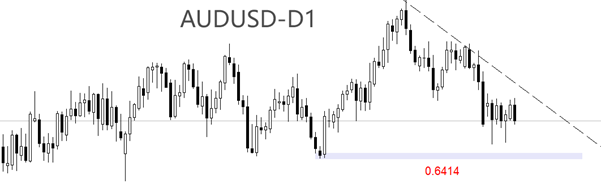 技术角度看,AUDUSD处于中期震荡态势,震荡区间下限在图中0.6414附近。10月份低点为0.6439点,比较接近区间下限。10月份出现了两根下影线较长的典型K线,未来有望出现短周期反弹行情。