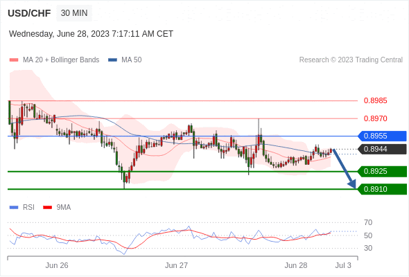 在 0.8955 之下,看跌,目标价位为 0.8925 ,然后为 0.8910 。