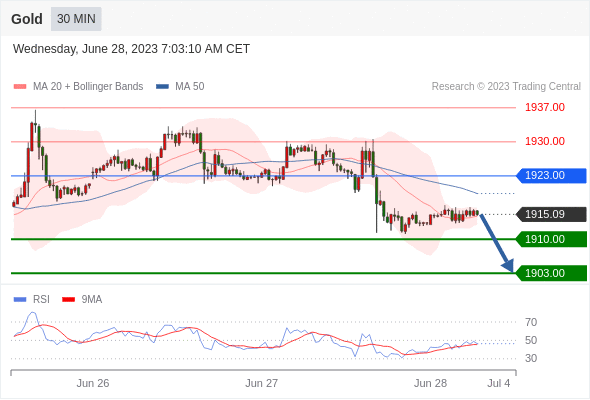 在 1923.00 之下,看跌,目标价位为 1910.00 ,然后为 1903.00 。