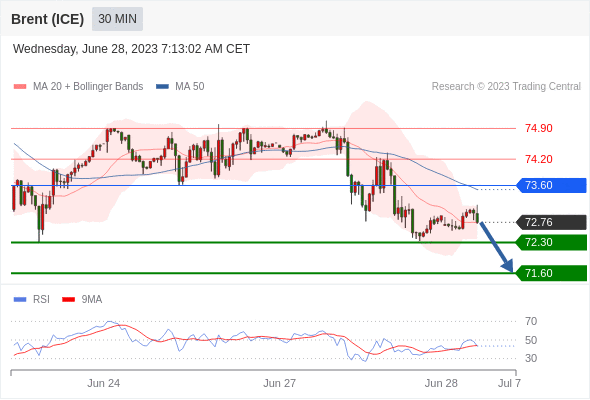 在 73.60 之下,看跌,目标价位为 72.30 ,然后为 71.60 。