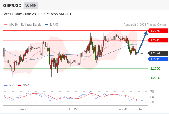在 1.2715 之上,看涨,目标价位为 1.2745 ,然后为 1.2760 。