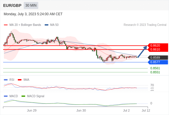 欧元/英镑 当日内: 有上涨的可能,目标价位定在 0.8620 。