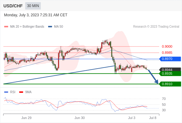 在 0.8970 之下,看跌,目标价位为 0.8935 ,然后为 0.8910 。